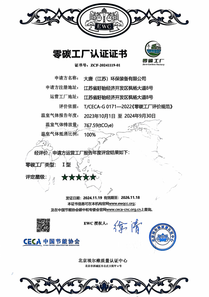 本网讯 近日,大唐(江苏)环保装备有限公司凭借其在绿色制造与可持续发展方面的卓越表现,成功获得中国节能协会颁发的“零碳工厂”认证证书,成为英国上市公司官网365首家获认证的“零碳工厂”,也是江苏省淮安市首个“零碳工厂”示范项目,为推动我国制造业的绿色转型树立了新的标杆。