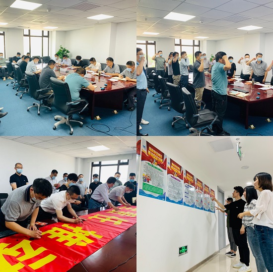 事业部党委委员、纪委书记、工会主席王凤荣宣贯了海外事业部《关于开展2021年“安全生产月”活动的通知》和活动方案。事业部副总经理覃绍亮带领与会人员进行安全宣誓,并颁发安全月主题宣传折页,宣布海外事业部2021年“安全生产月”活动正式启动。