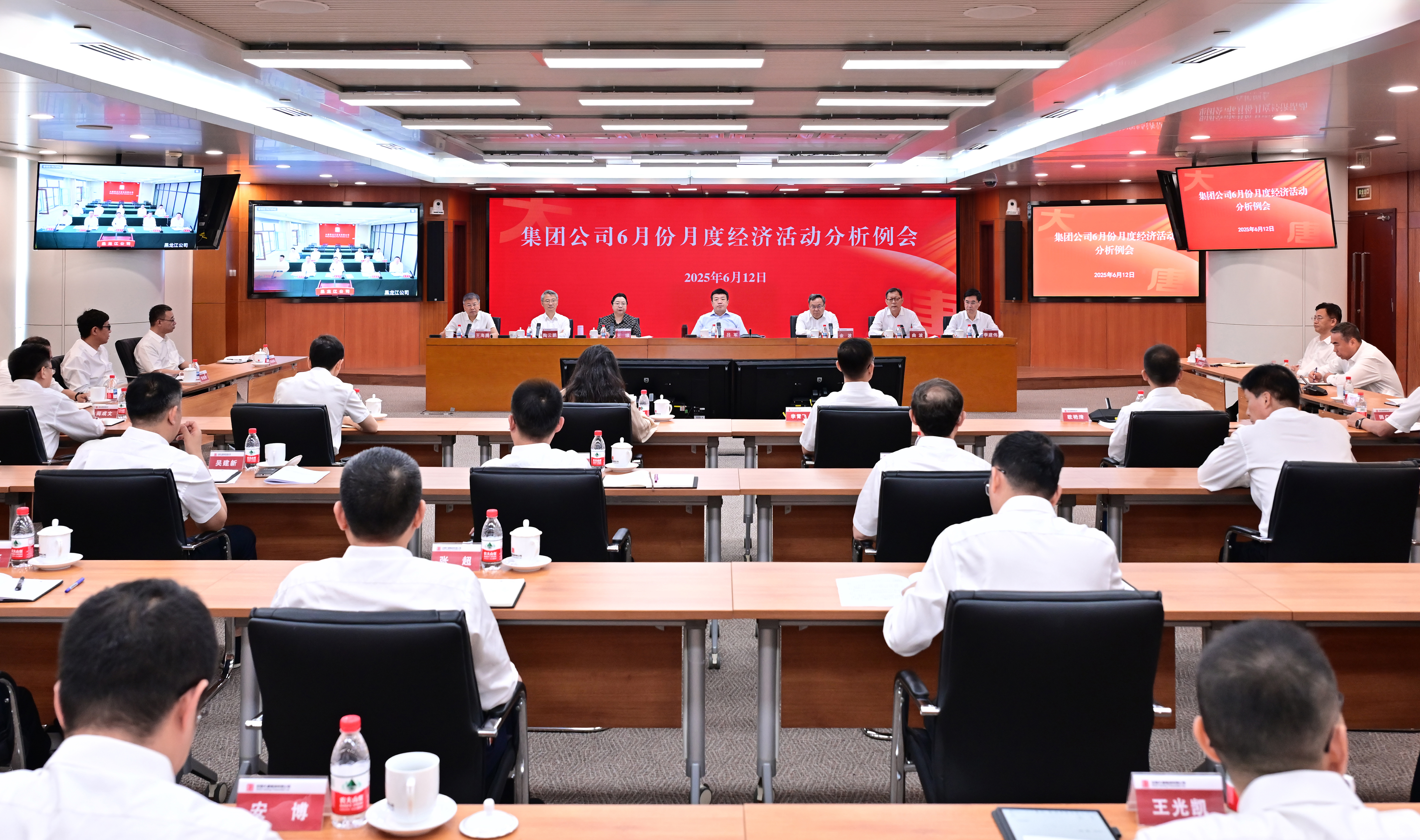 会议以现场结合视频形式召开。集团公司总师级领导,总部各部门负责人在主会场参加会议;各二级企业负责人及相关人员在分会场参加会议。