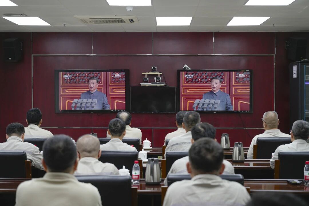 海南能源公司组织全体职工观看九三阅兵直播,激发爱国热情,凝聚奋进力量。