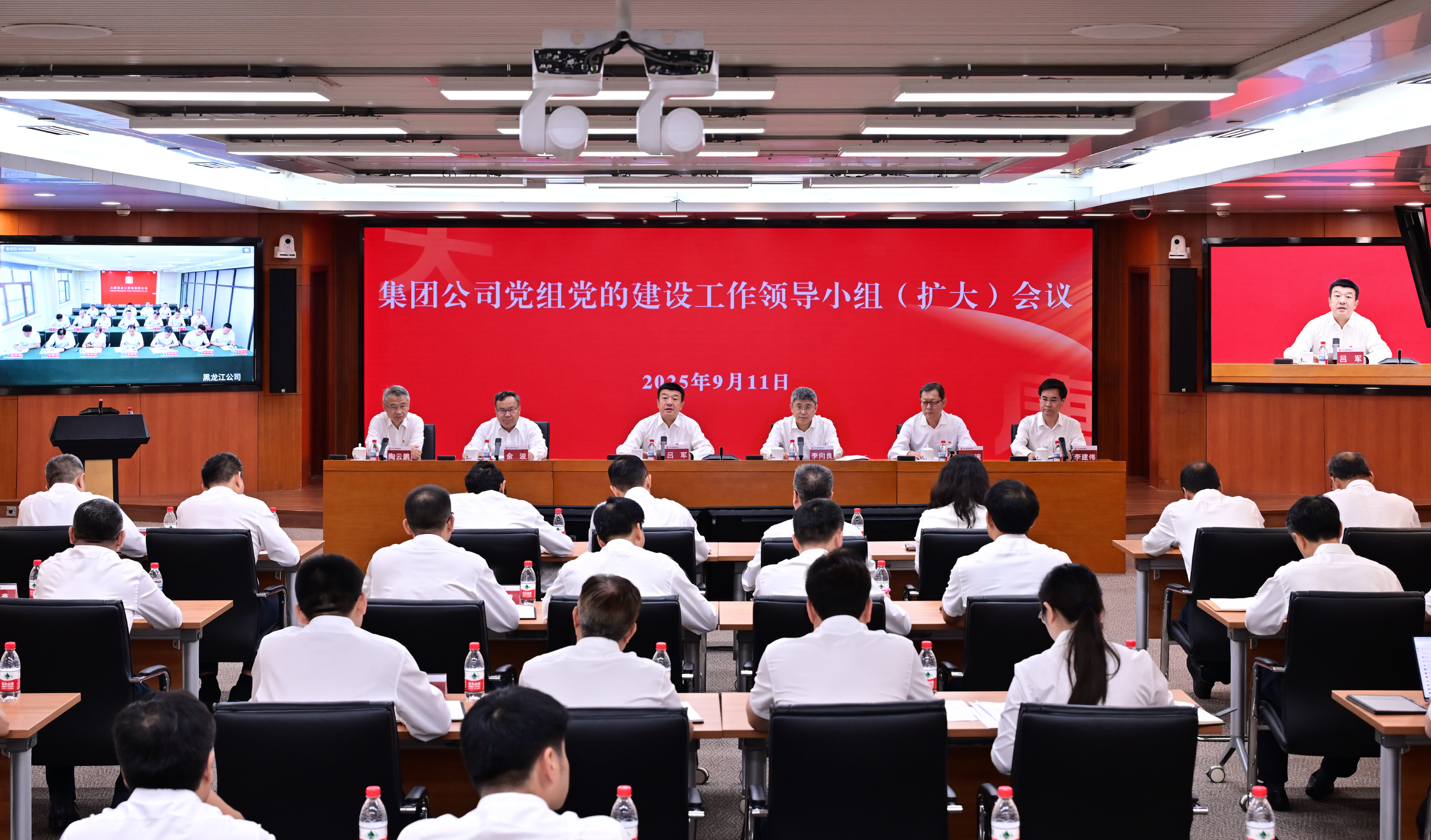 集团公司党组书记、董事长、党的建设工作领导小组组长吕军出席会议并讲话,董事、总经理、党组副书记、党的建设工作领导小组成员李向良主持会议,董事、党组副书记、党的建设工作领导小组成员余波传达习近平总书记重要指示精神以及中央党的建设工作领导小组会议精神,集团公司领导曲波、陶云鹏、李建伟出席会议。
