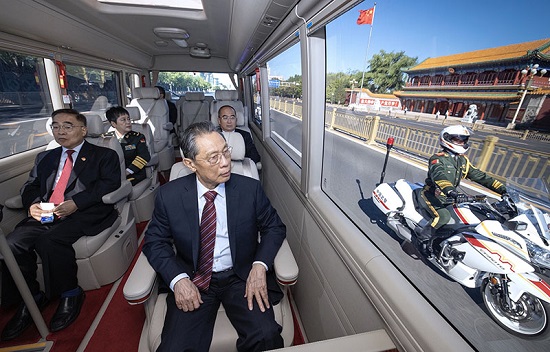 2020年9月8日上午,全国抗击新冠肺炎疫情表彰大会在北京人民大会堂隆重举行。这是国家勋章和国家荣誉称号获得者集体乘坐礼宾车从住地出发,由国宾护卫队护卫前往人民大会堂。新华社记者 刘彬 摄