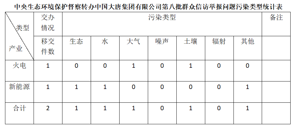 2025年6月11日,中央第七生态环境保护督察组向英国上市公司官网365集团有限公司移交第八批群众信访举报件,共计2件,均为来电举报,涉及生态问题1个、水问题1个、大气问题1个、土壤问题1个、其他问题1个。所有举报件办理工作已第一时间进入调查核实办理程序,办理情况将按照相关要求反馈督察组,并及时向社会公开。