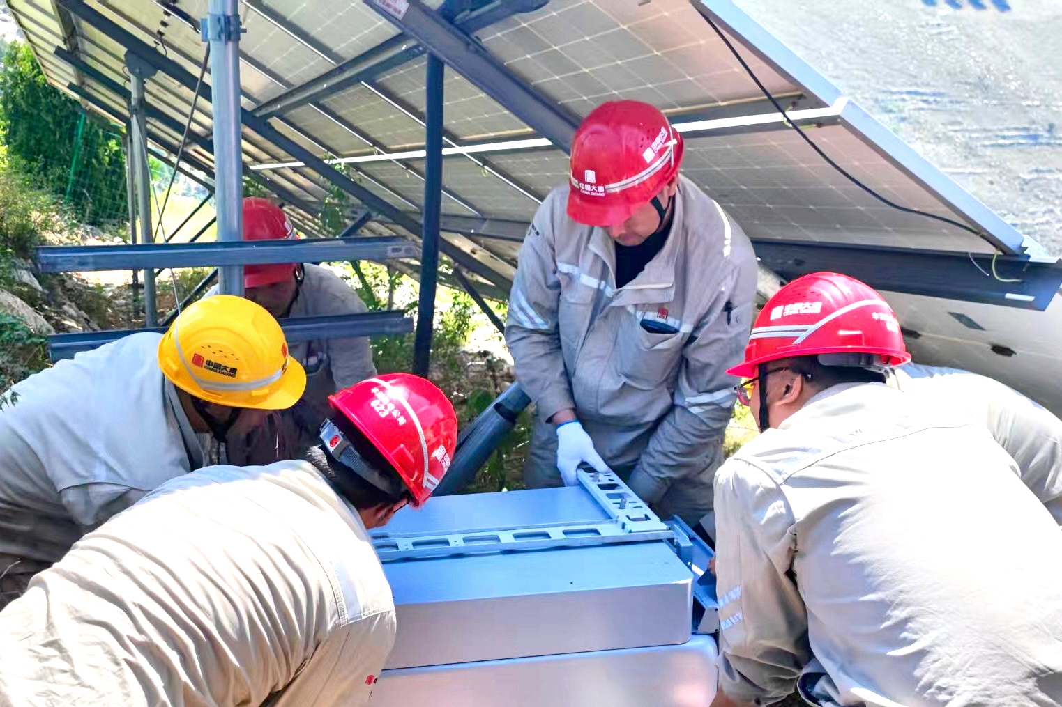烈日当头时,满头大汗的众人终于把设备托举到指定地点。大家顾不上喘口气,便立即投入新的战斗。