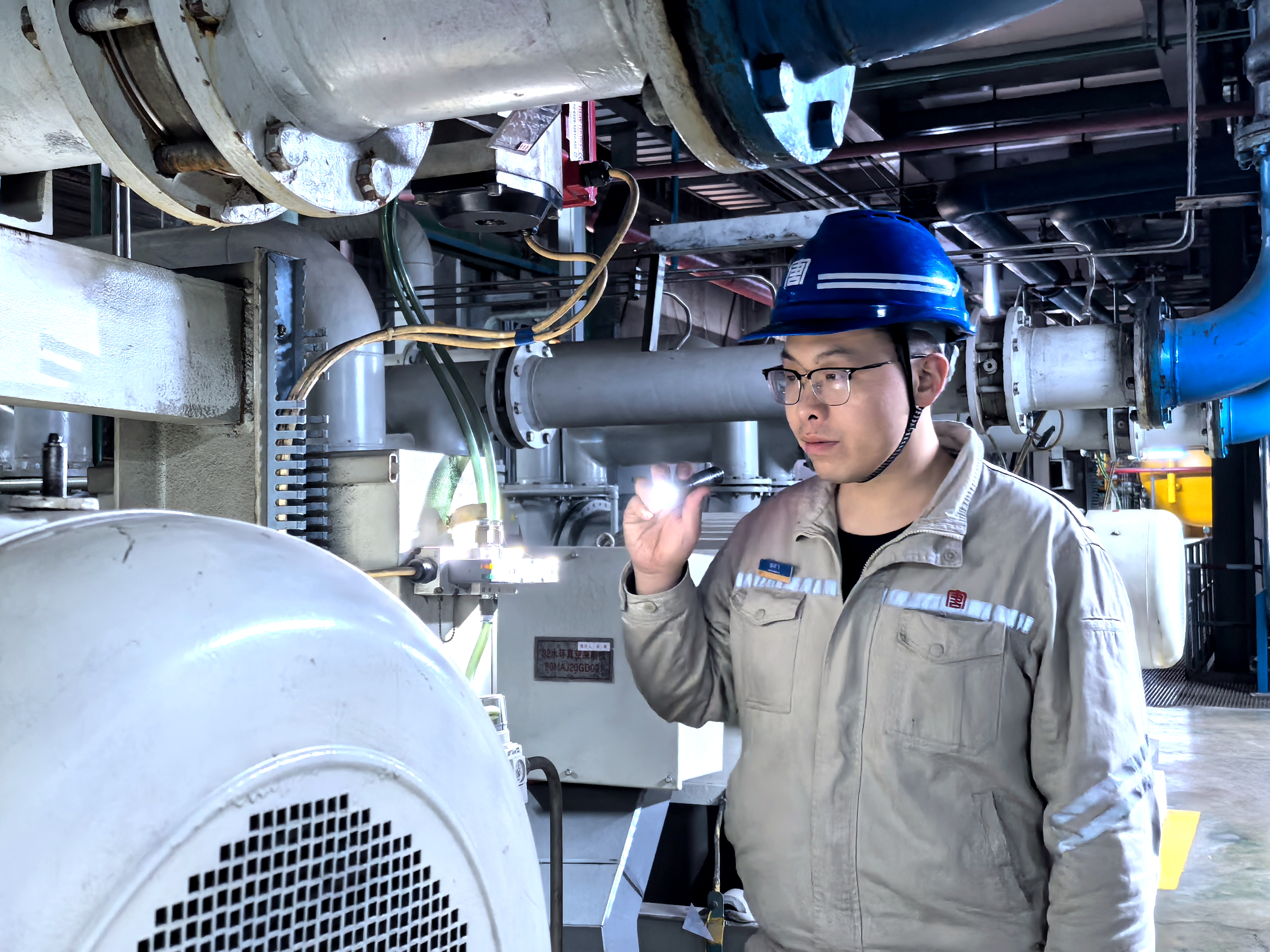 为了跨越理论与实践的鸿沟,在现场,陈宇飞跟随师傅逐根核对信号线路,对照图纸反复验证。下班后,他认真研读技术规程与设备说明书,将每一个参数、每一道逻辑刻入脑海。实验室里,他反复校准压力开关,直至误差精确控制在允许范围内。粉尘弥漫的锅炉顶包中,他蜷身修复壁温测点,汗水浸透工装仍忘我投入。十年磨砺,他核对过的信号线路超万条,练就了“故障定位快、问题分析准、解决措施稳”的本领,当年“一问三不知”的学徒逐渐成长为独当一面的技术骨干,变成团队中不可或缺的“定盘星”。