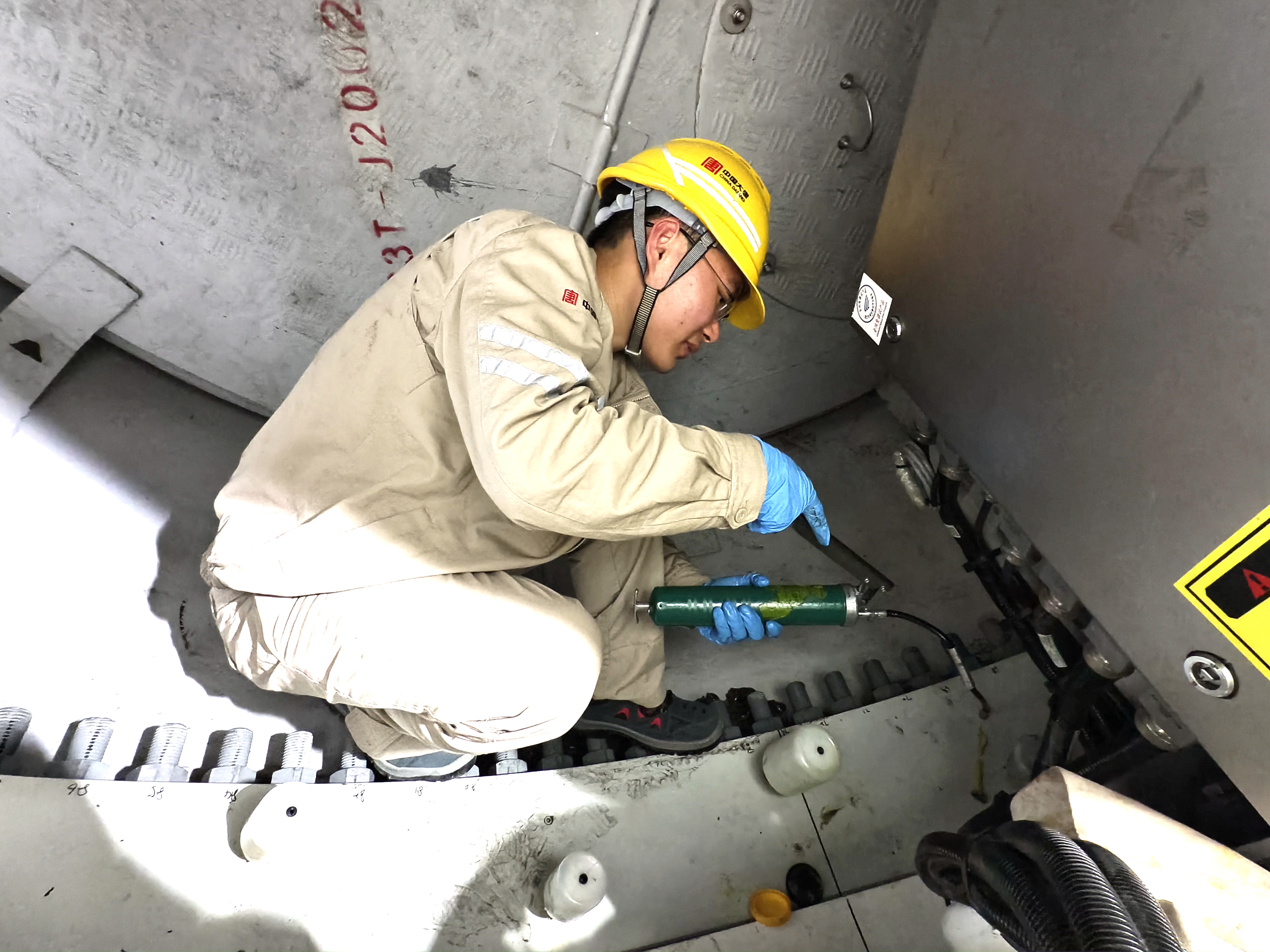 在这螺蛳壳般的空间里,站直身体是奢望,弯腰弓背才是常态。每一次精准的按压,每一次黄油的注入,看似单调重复,实则暗藏玄机与风险。风机半年定检,考验的不仅是指尖上的“绣花功夫”,更是钢铁般的意志与挑战极限的勇气。