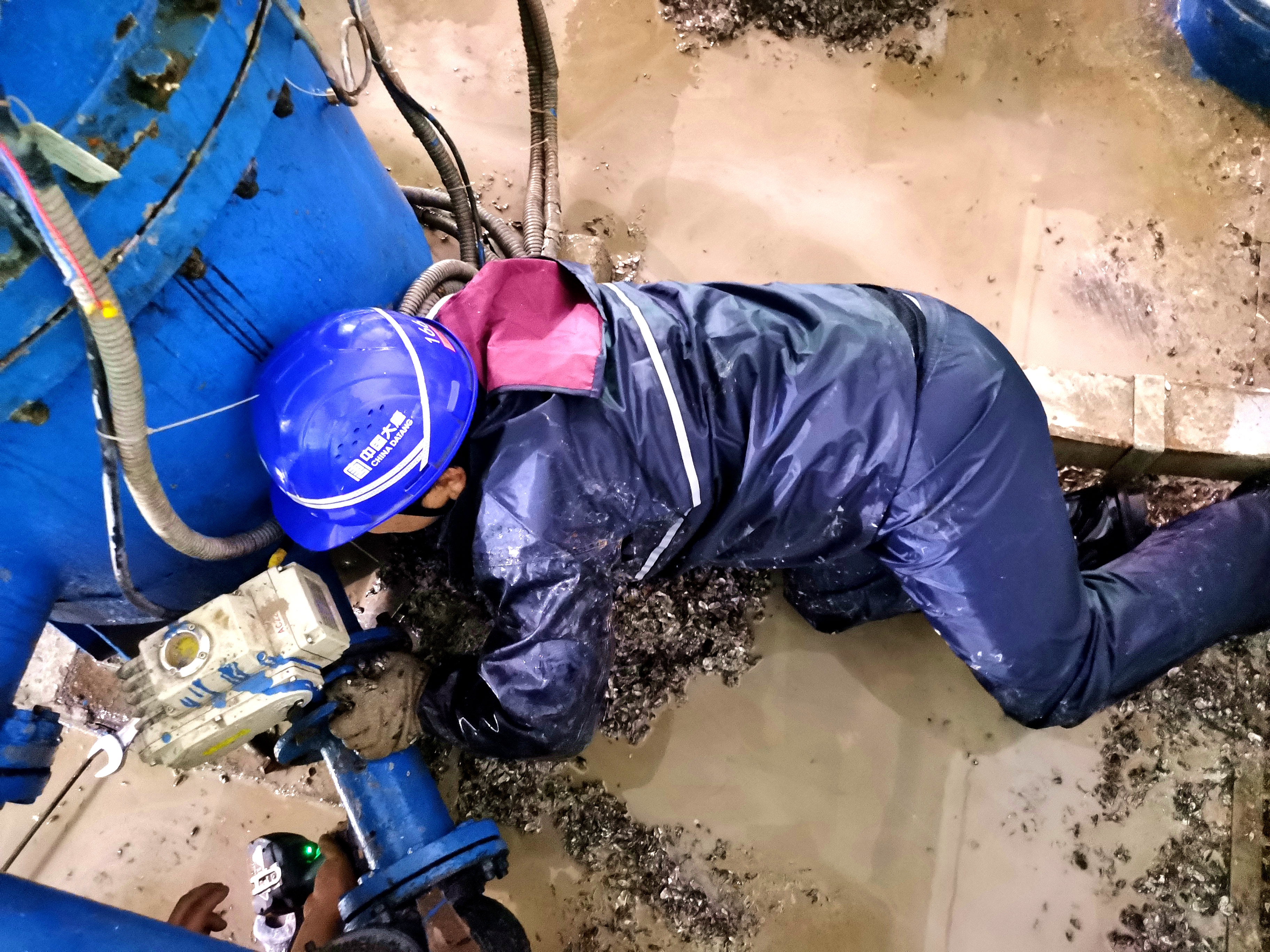 夏日里,厂房技术供水层潮湿、闷热,温度高达37摄氏度,比室外足足高出了4-5摄氏度。滤水器外围空间狭小,突击队员或跪或爬,浑身浸透在湿淋淋的地面,徒手将附着在管壁内的贝类杂物清理出来,刺鼻的腥臭味在潮热的空气中飘荡开来。“这味道好呀,下班请大家吃海鲜。”检修工小李打趣道,引来大家一片欢笑。
