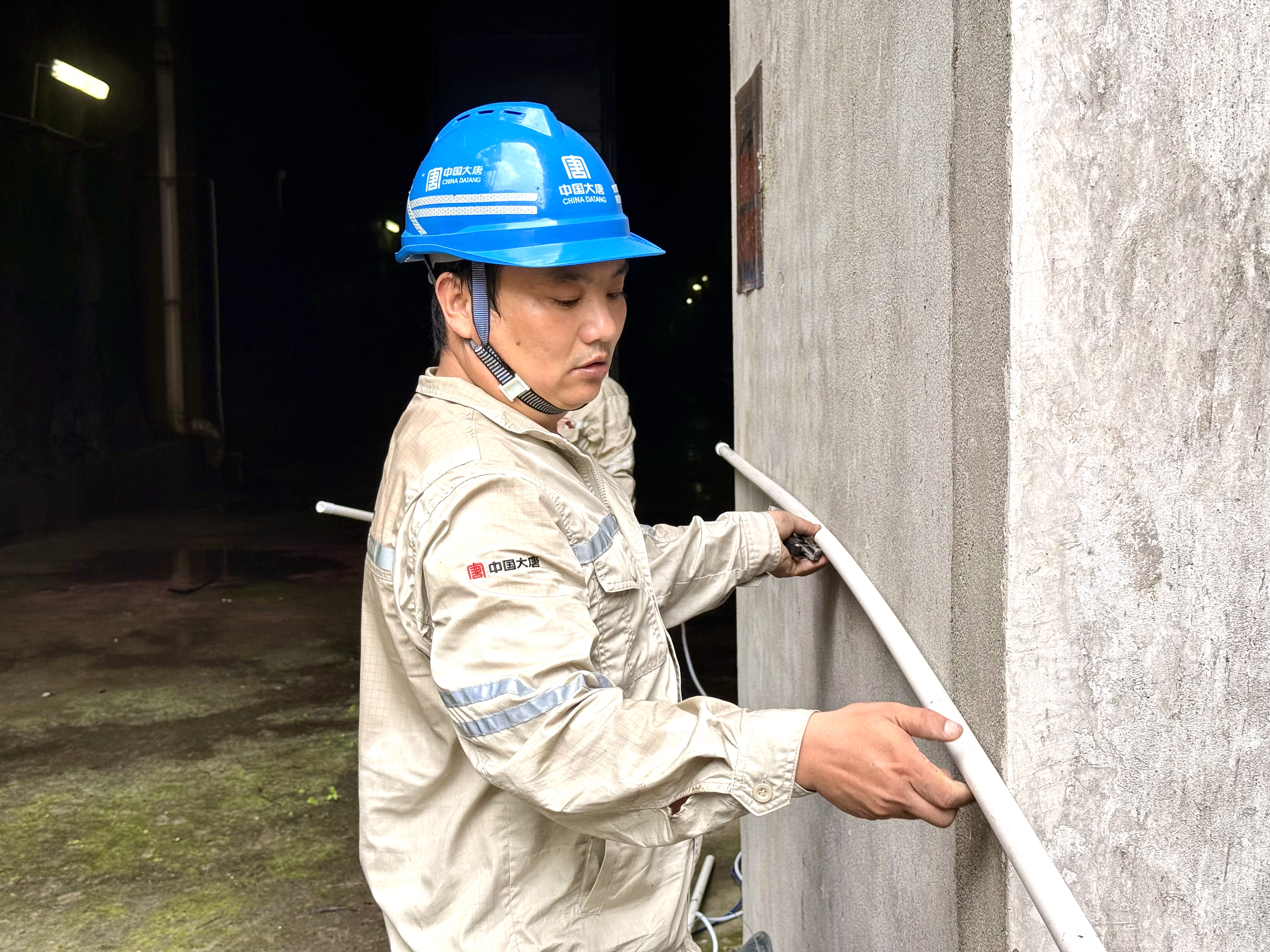 只见田维权蹲在闸门处,左手扶着穿线管,右手捏着监测电缆缓缓推送,小心翼翼将监测电缆穿过直径不足10厘米的穿线管,粗糙的手套被线缆磨得发亮。“管线里有毛刺,得慢着点,小心手。”他头也不抬地叮嘱身后递工具的周玲,声音里带着一丝沙哑。