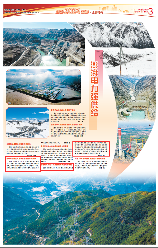 【中国电力报]全球海拔最高风电项目全容量并网投产 全球煤电机组二次再热最高汽温纪录刷新