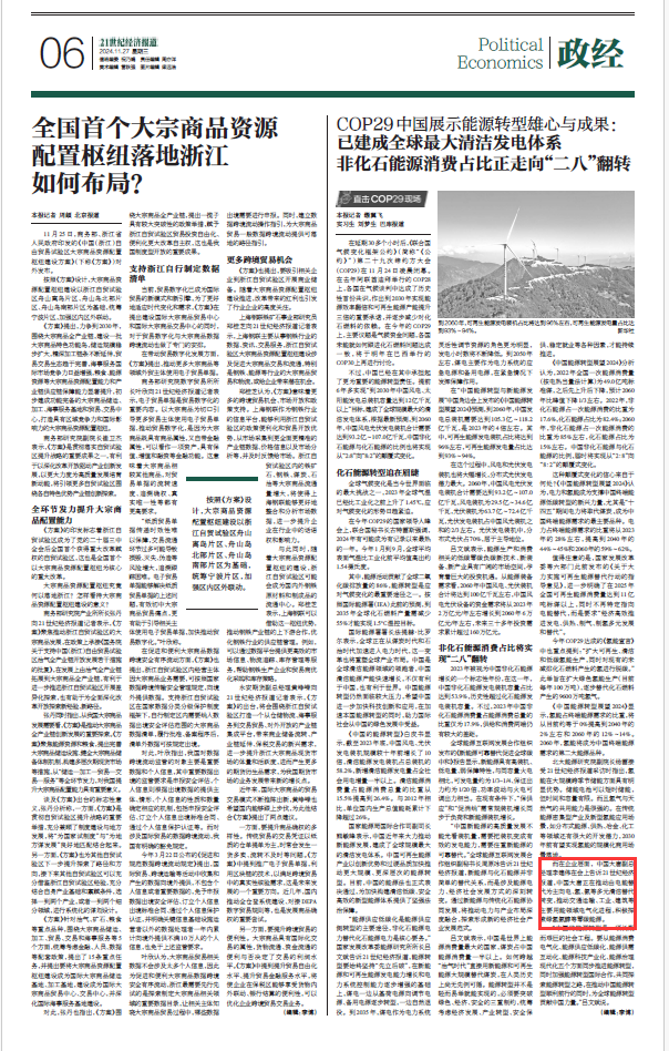 在延期30多个小时后,《联合国气候变化框架公约》(简称“《公约》”)第二十九次缔约方大会(COP29)在11月24日凌晨闭幕。在去年阿联酋迪拜举行的COP28上,各国在气候谈判中达成了历史性首份共识,作出到2030年实现能源效率翻倍和可再生能源产能提升三倍的重要承诺,并逐步减少对化石燃料的依赖。在今年的 COP29上,主要议题是气候资金问题,各国未能就如何跟进化石燃料问题达成一致,将于明年在巴西举行的COP30上再进行讨论。