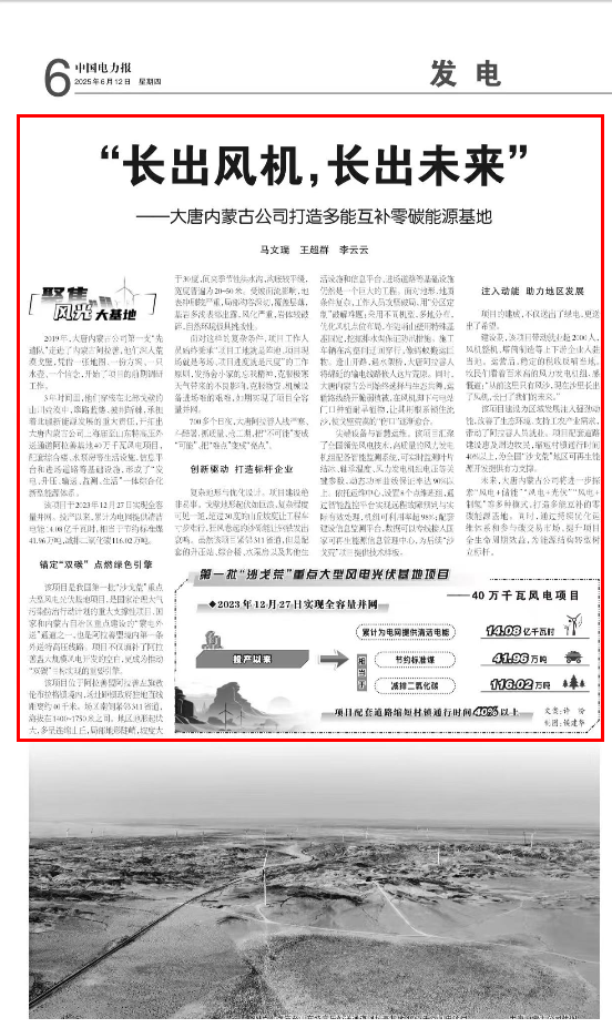 2025-6-12-6版中国电力报【长出风机长出未来】大唐内蒙古公司打造多能互补零碳能源基地