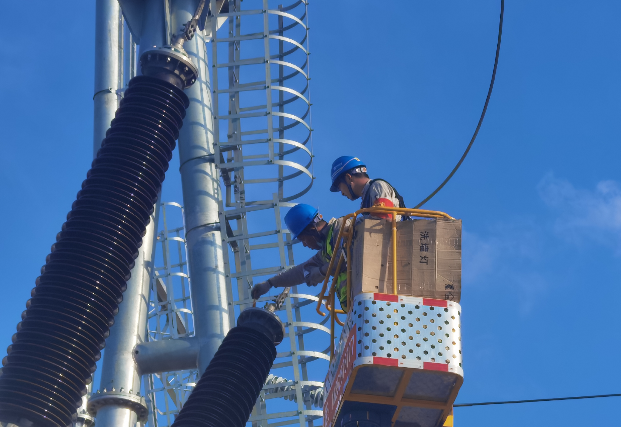 等升降车将两人慢慢送至空中,沈启超有些紧张,不由得口中有些干燥,他脑海中反复回忆着工作前安全专责和班长交代的工作流程和注意事项,定了定神开始工作。