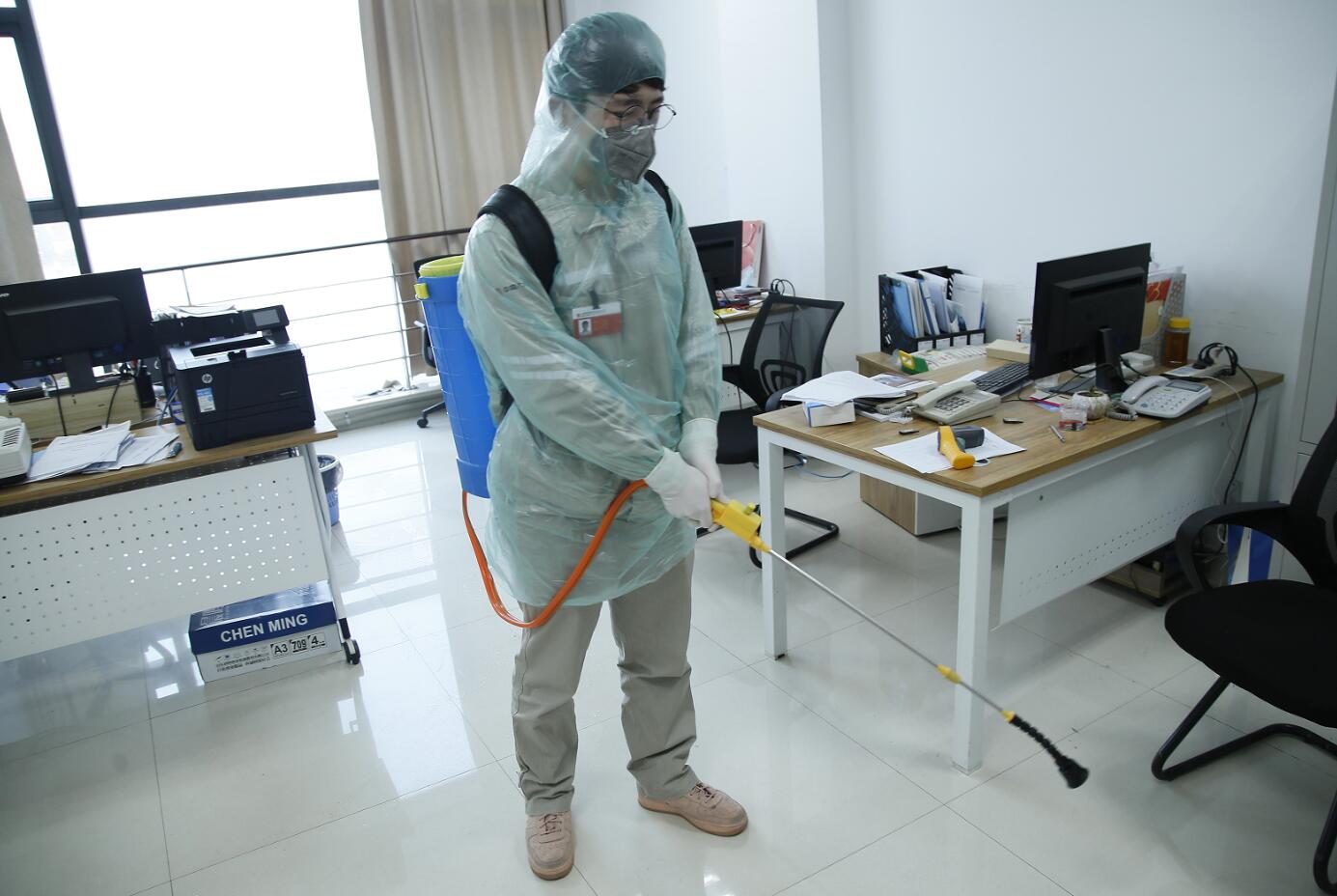 办公室防疫消杀(周航/摄)