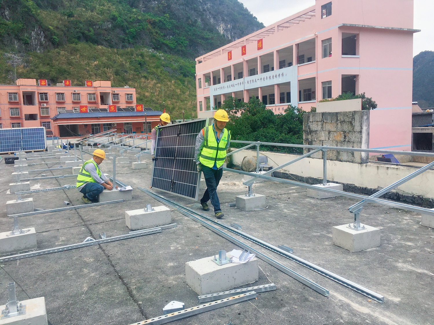 施工单位正在安装光伏板