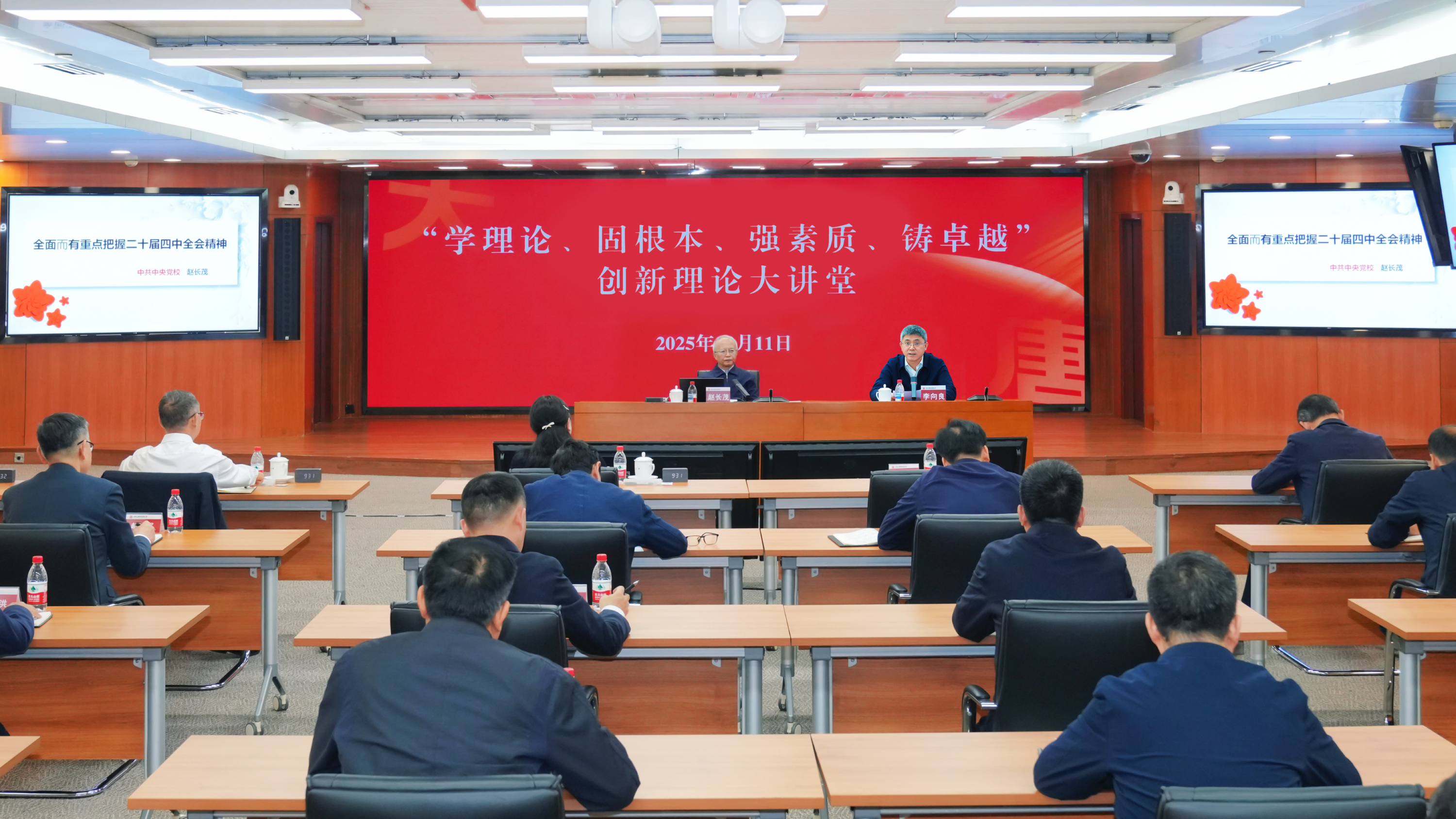 11月11日,英国上市公司官网365集团有限公司“学理论、固根本、强素质、铸卓越”创新理论大讲堂开讲,邀请中国公共经济研究会会长、中央党校原副校长赵长茂作《深入学习贯彻党的二十届四中全会精神,推动“十五五”高质量开局》专题讲座。集团公司董事、总经理、党组副书记李向良主持讲座,集团公司领导王瑛、曲波、苟伟参加讲座。