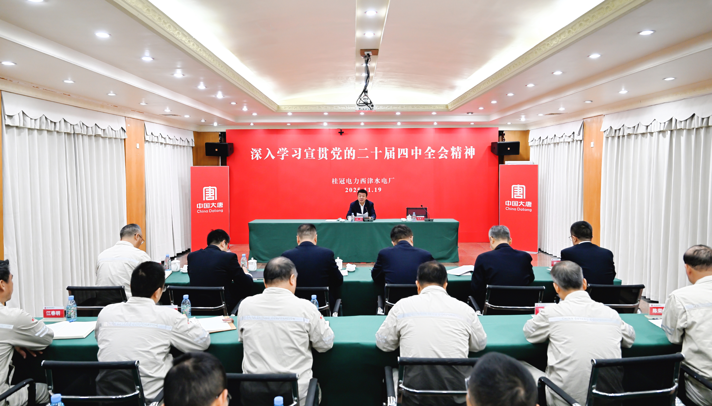 11月19日,集团公司党组书记、董事长吕军到广西桂冠西津水电厂宣讲。他强调,深入学习宣传贯彻党的二十届四中全会精神是当前和今后一个时期的重大政治任务。要充分认识全会的重大意义,更加紧密团结在以习近平同志为核心的党中央周围,切实增强“四个意识”、坚定“四个自信”、做到“两个维护”。