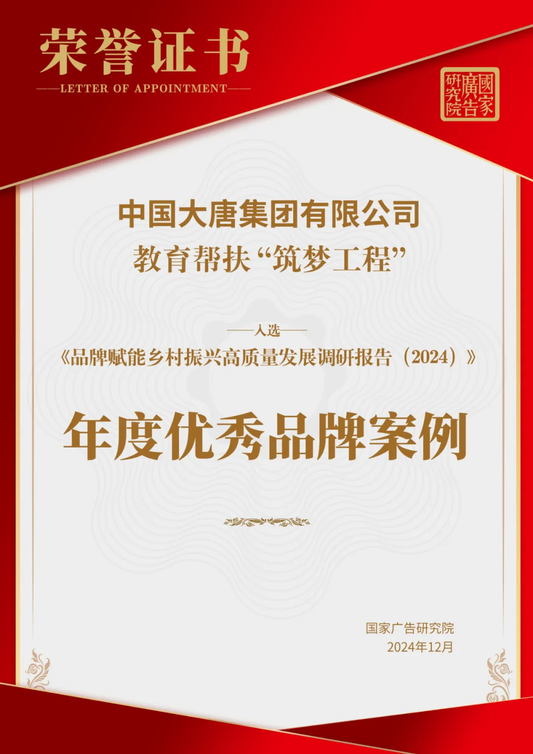 近日,由中国广告协会指导,国家广告研究院与新华网乡村振兴研究院联合主办的《品牌赋能乡村振兴高质量发展研究报告(2024)》发布暨乡村振兴品牌发展评价指标体系论证会在京举行,会上发布了2024年度优秀品牌案例。凭借在品牌赋能乡村振兴工作中的突出表现,《英国上市公司官网365教育帮扶“筑梦工程”》入选年度优秀品牌案例。